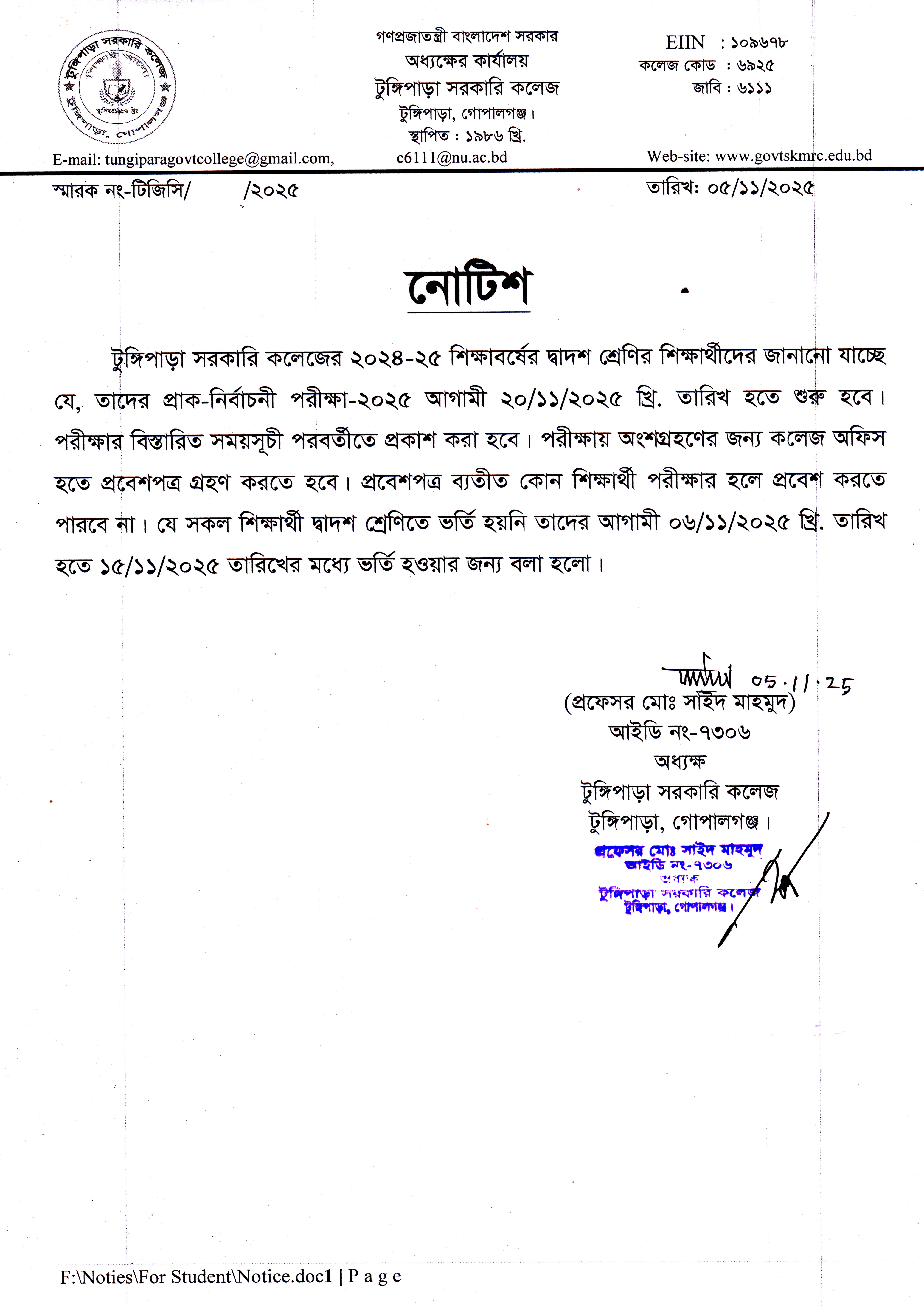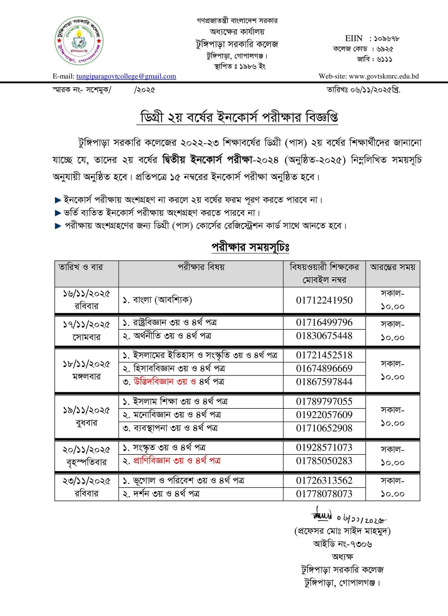 টুঙ্গিপাড়া সরকারি কলেজ, টুঙ্গিপাড়া, গোপালগঞ্জ- গোপালগঞ্জ জেলার অন্তর্গত ঐতিহ্যবাহী টুঙ্গিপাড়া পৌরসভা সদরে কলেজটি অবস্থিত। হাজার বছরের শ্রেষ্ঠ বাঙালী জাতির জনক বঙ্গবন্ধু শেখ মুজিবুর রহমানের সমাধি সৌধ থেকে ১.৫০ কিলোমিটার দক্ষিনে এবং মধুমতি নদী থেকে ০.৫০ কিলোমিটার উত্তরে টুঙ্গিপাড়া পৌরসভার ০৯ নং ওয়ার্ডের পাটগাতি গ্রামে এক মনোরম স্থানে কলেজের অবস্থান। কলেজের মোট জমির পরিমান ৬.৪৫ একর। এই কলেজে একটি প্রশাসনিক ভবন, একটি বিজ্ঞান ভবন, একটি আই, সি, টি ভবনসহ তিনটি বিজ্ঞানাগার, একটি সমৃদ্ধ আই, সি, টি ল্যাব, একটি ছাত্র হোস্টেল ও একটি ছাত্রী হোস্টেল রয়েছে, যা এই কলেজের শিক্ষার পরিবেশকে উন্নত ও আধুনিক করেছে। একলেজে শিক্ষার্থী সংখ্যা ৪০০০ জন(প্রায়), শিক্ষক ৫১ জন ও অশিক্ষক-কমর্চারী ১৯ জন। উচ্চ মাধ্যমিক শ্রেণিতে বিজ্ঞান, মানবিক ও ব্যবসায় শিক্ষা শাখা রয়েছে। স্নাতক শ্রেণিতে কলা, বিবিএস ও বিজ্ঞান অনুষদ রয়েছে। ব্যবস্থাপনা, বাংলা, রাষ্ট্রবিজ্ঞান, ইসলামের ইতিহাস ও সংস্কৃতি, অর্থনীতি, দর্শন, সংস্কৃত, হিসাববিজ্ঞান ও গণিতসহ মোট ৯টি বিষয়ে স্নাতক সম্মান (অনার্স) কোর্স চালু রয়েছে। কলেজটি ১৯৮৬ সালের ১৩ সেপ্টেম্বর প্রতিষ্ঠিত হয় এবং ২০১০ সালের ০৬ জুলাই জাতীরকরণ হয়। কলেজের সকল পরীক্ষার ফলাফল সন্তোসজনক। অত্র কলেজ প্রতিষ্ঠা হওয়ায় এলাকার শিক্ষার্থীদের উচ্চ শিক্ষা গ্রহনের পথ সুগম হয়েছে।