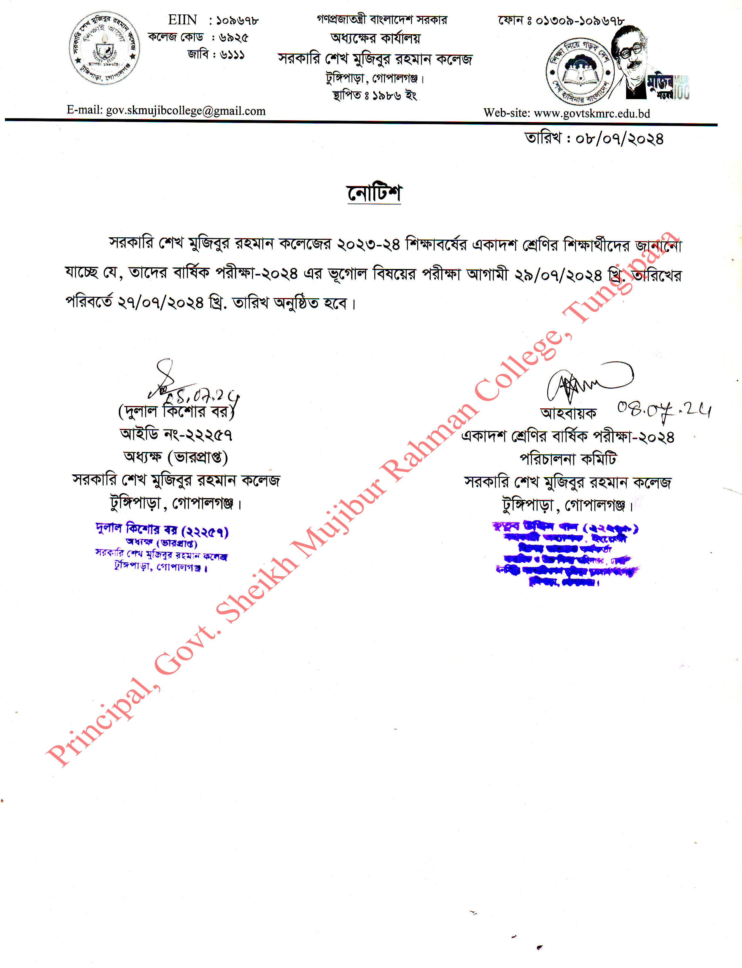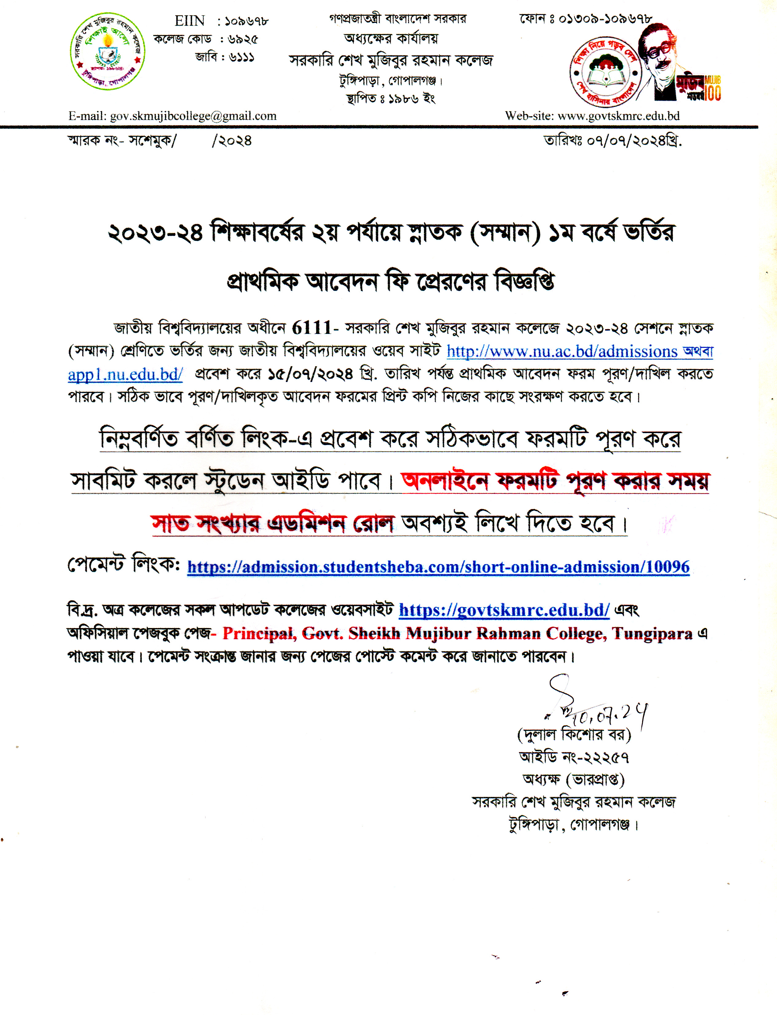 ২০২৪-২৫ শিক্ষাবর্ষের শিক্ষার্থদের একাদশ শ্রেণিতে ভর্তির বিজ্ঞপ্তি
