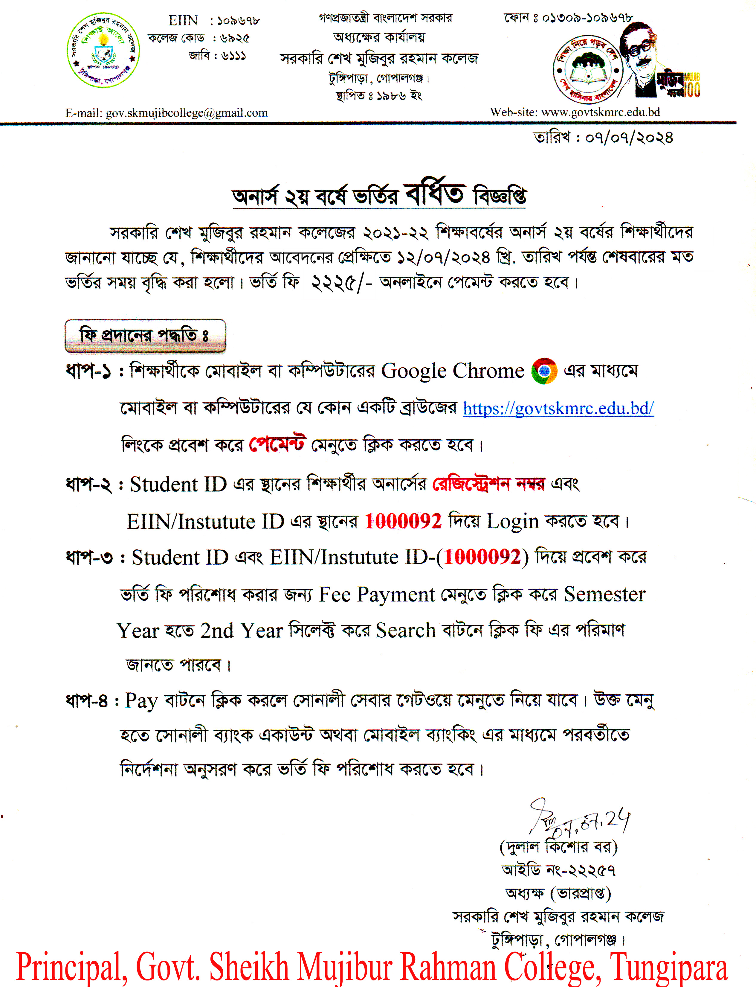 ২০২১-২২ শিক্ষাবর্ষের অনার্স ২য় বর্ষে ভর্তির সর্বশেষ বিজ্ঞপ্তি