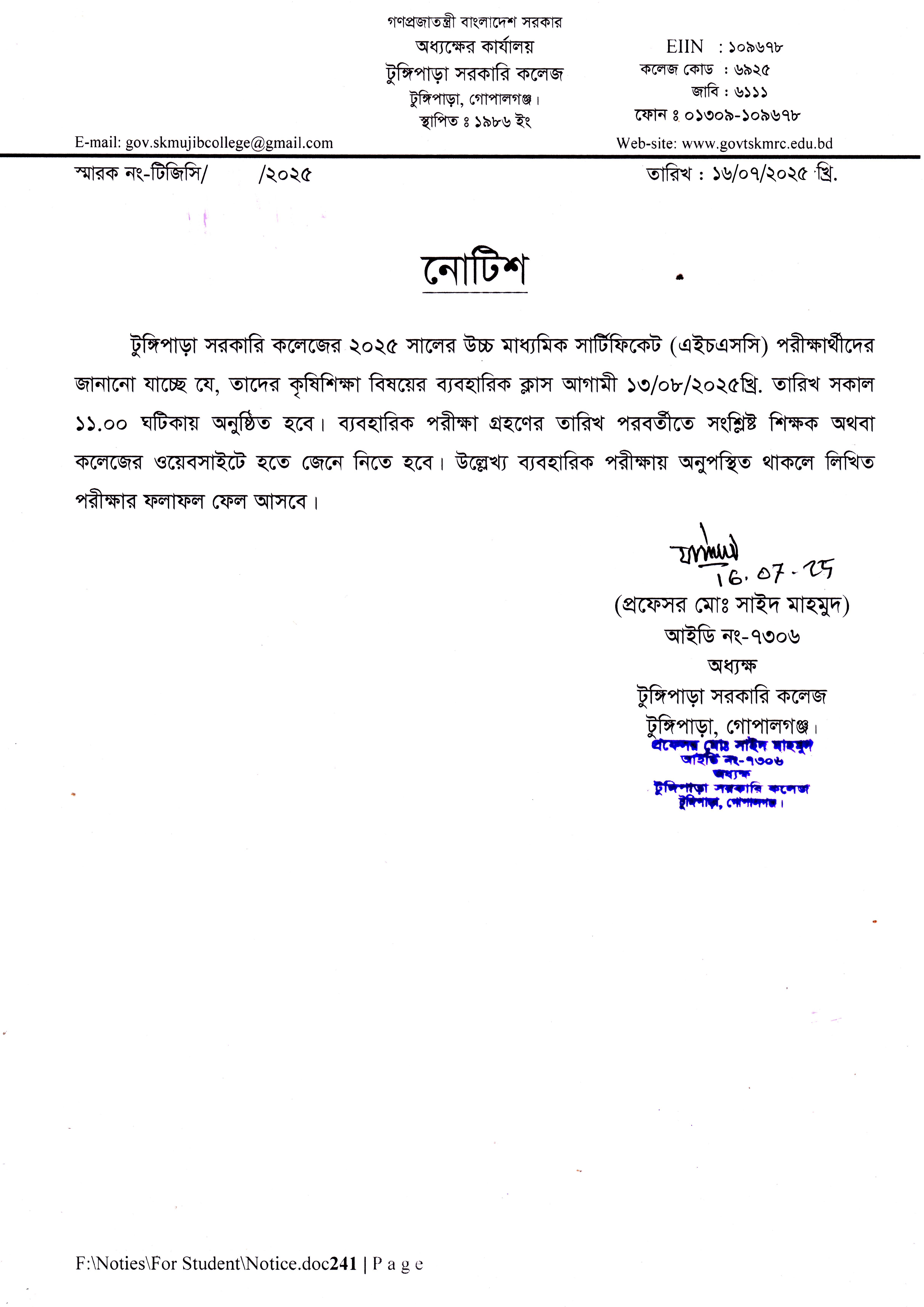 কৃষিশিক্ষা ব্যবহারিক ক্লাসের বিজ্ঞপ্তি